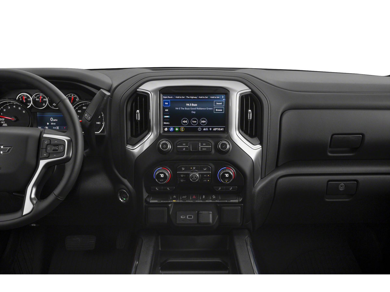 CONVENIENCE PACKAGE WITH BUCKET SEATS includes (A50) bucket seats, (D07) center console, (CJ2) dual-zone automatic climate control, (A2X) 10-way power driver seat including power lumbar, (KA1) heated driver and passenger seats, (KI3) heated steering wheel and (N37) manual tilt-telescoping steering column; Crew Cab models include (R7O) Cloth Rear Seat with Storage Package and includes (SNR) Up-level Rear Seat with Storage Package. CONVENIENCE PACKAGE II includes (UG1) Universal Home Remote, (A48) rear sliding power window, (KI4) 120-volt power outlet, (KC9) 120-volt bed-mounted power outlet, (IOS) Chevrolet Infotainment System with 8" diagonal color touch-screen with (MCR) USB ports, SiriusXM with 360L, (U2L) HD radio and (UVB) HD Rear Vision Camera Includes (UQA) Bose Premium Sound System.), SAFETY PACKAGE includes (UD5) Front and Rear Park Assist, (UKC) Lane Change Alert with Side Blind Zone Alert and (UFG) Rear Cross Traffic Alert (Includes Perimeter Lighting. BED PROTECTION PACKAGE includes (B1J) wheel house liners and (CGN) Chevytec spray-on bedliner, ADVANCED TRAILERING PACKAGE includes (PZ8) Hitch Guidance with Hitch View, (U1D) Advanced Trailering System and (JL1) trailer brake controller, AUDIO SYSTEM, CHEVROLET INFOTAINMENT 3 PLUS SYSTEM 8" diagonal HD color touchscreen, AM/FM stereo, Bluetooth® audio streaming for 2 active devices, Apple CarPlay® and Android Auto® capable, voice recognition, in-vehicle apps, cloud connected personalization for select infotainment and vehicle settings. Dealer upgradeable to embedded navigation. Subscription required for enhanced and connected services after trial period. ENGINE, 5.3L ECOTEC3 V8 (355 hp [265 kW] @ 5600 rpm, 383 lb-ft of torque [518 Nm] @ 4100 rpm); featuring all-new Dynamic Fuel Management that enables the engine to operate in 17 different patterns between 2 and 8 cylinders, depending on demand, to optimize power delivery and efficiency (STD), TRANSMISSION, 10-SPEED AUTOMATIC, ELECTRONICALLY CONTROLLED with overdrive and tow/haul mode. Includes Cruise Grade Braking and Powertrain Grade Braking (STD), CLOTH REAR WITH STORAGE PACKAGE 60/40 folding bench for Crew Cab models, includes seatback storage on left and right side, center fold out armrest with 2 cupholders, (includes child seat top tether anchor).