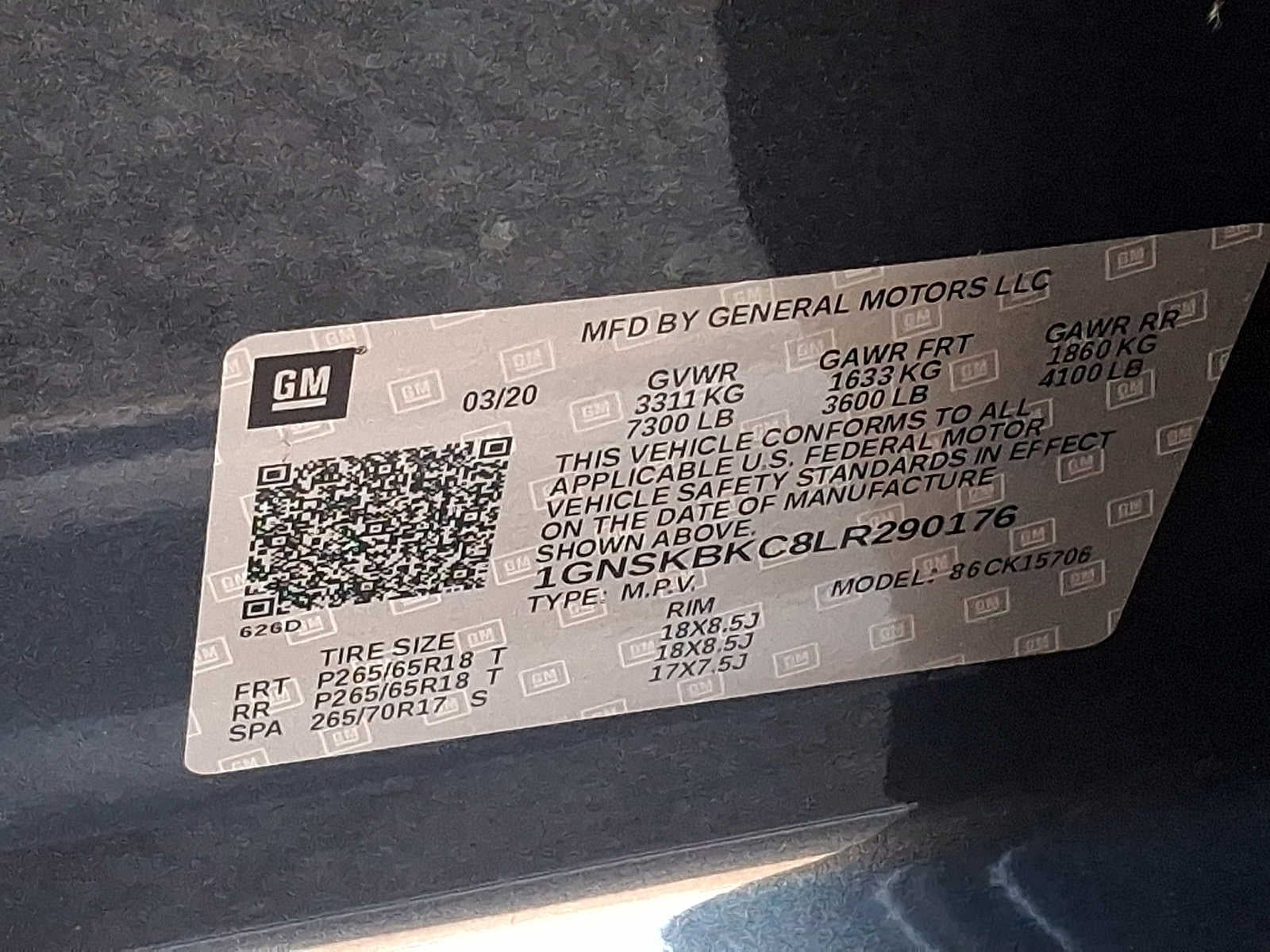- Tires, P265/65R18 all-season, blackwall