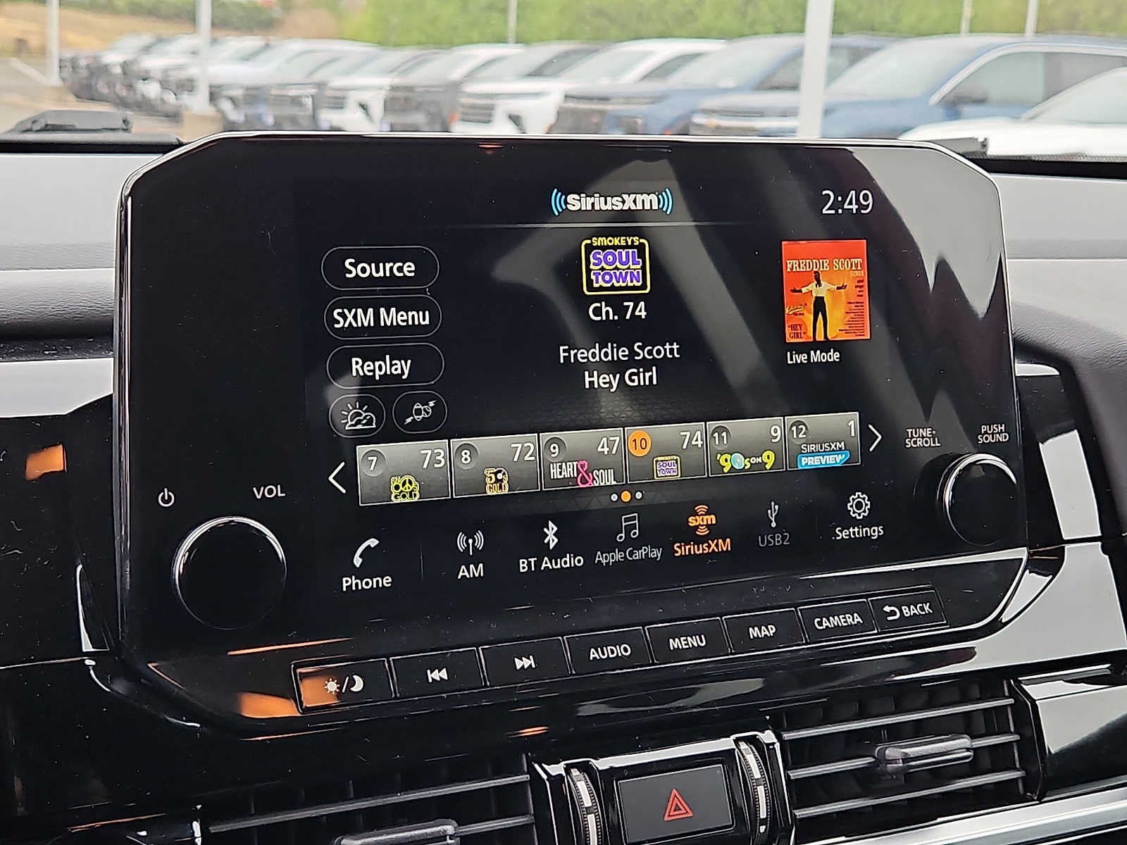 - Radio: AM/FM Audio System -inc: 6 speakers, wireless Apple CarPlay, Android Auto, 9" color display w/multi-touch control, SiriusXM satellite radio w/advanced audio features, 2 illuminated front USB connection ports (1 type A, 1 type C) for iPod interface and other compatible devices, Bluetooth® hands-free phone system, streaming audio via Bluetooth®, hands-free text messaging assistant and Siri Eyes-Free/Google Assistant voice recognition