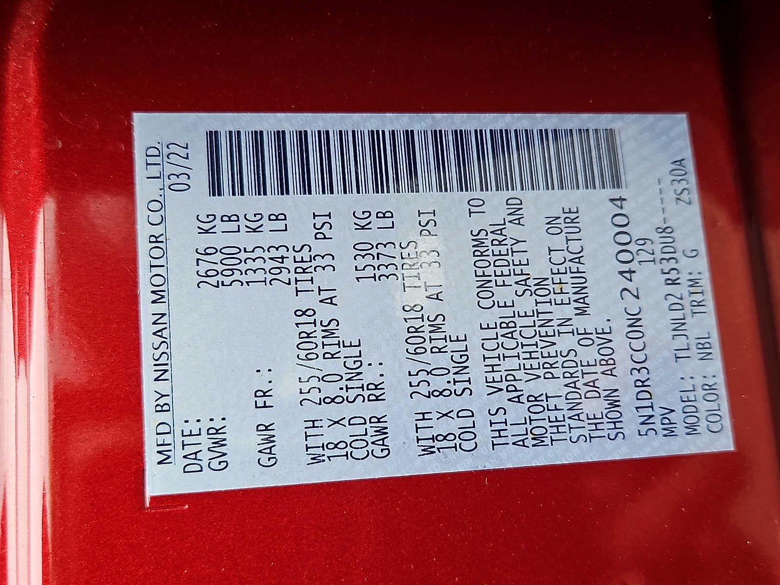 - Vehicle Name: Nissan Pathfinder